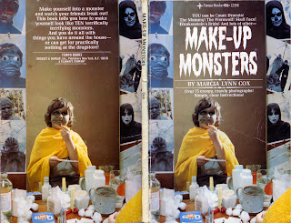 But since it's almost Halloween, I thought I'd share the Make-Up Monsters book with you and teach you the magic of corn syrup, and how it can be used as a 'glue' to adhere shit to your face. This book was my 'go to' for Halloween for the next two years, and times in between when I was feeling adventurous and bored....God, how I made a mess. Anyway, here you go!